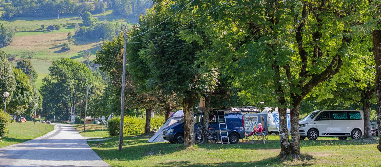 Que vous soyez team camping-car, caravane, tente ou van aménagé, nos spacieux emplacements ombragés vous offrent tout ce que vous recherchez, dans un cadre verdoyant et convivial. Installez-vous sous les arbres, avec panorama sur les montagnes (c’est quand même sympa), et laissez-vous bercer par le chant des oiseaux et le calme environnant !
